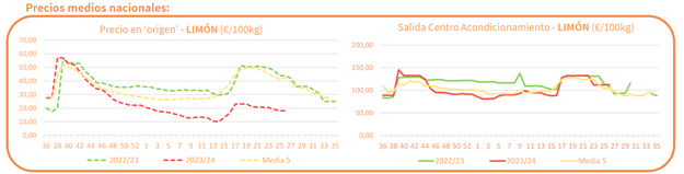 For yet another week, lemon prices are reported to have fallen below the average of the last 5 seasons. In fact, in the last week of June, they stood 52% below, with a national average price of 0.18 €/kilo, according to data from the Spanish Ministry of Agriculture, Fisheries and Food.
