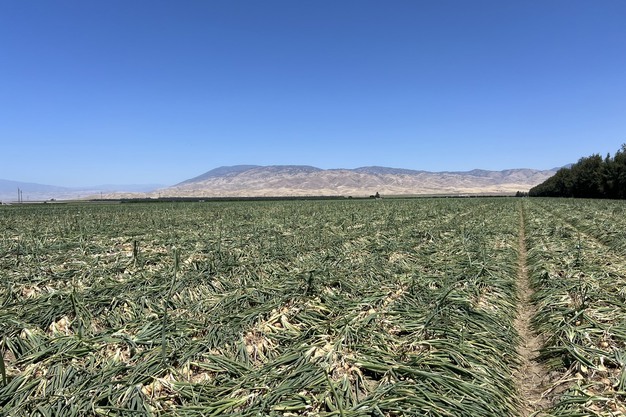 Gills Onions is harvesting in Bakersfield, California in the San Joaquin Valley.