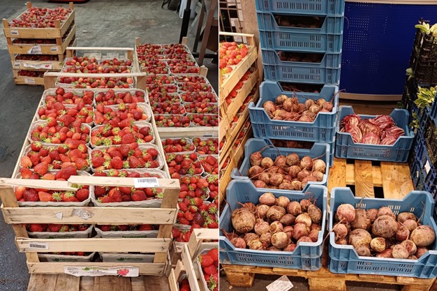 Left: Strawberries. Right: Beetroot and radicchio, also grown on the farm.