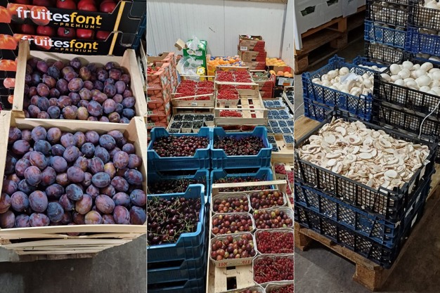 The Rogge Obst und Gemüse product range. The company, which is based in the Mainz wholesale market hall, currently sells plums, cherries and a wide variety of berries. Mushrooms can also be cut, at the customer's request.