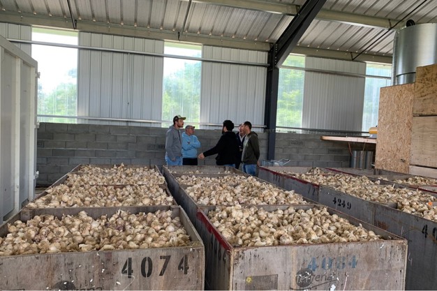 It is still too early to forecast volumes, but pink garlic yields seem to be better than last year while problems such as excess water have clearly affected the garlic crops. "Because of the excessive rainfall throughout June, we think that there will be some brownish discolouration of the outer skins this year," explains Céline Vezian. While this discolouration "does not alter the intrinsic quality of the garlic," it does create some difficulty in terms of marketing. The situation varies greatly depending on the production area and the grower, with some starting their harvest earlier than others. "It remains to be seen what will happen in terms of conservation, since the drying stage is still underway. As for the presence of Fusarium or Waxy Breakdown, we will also have to wait and see."
