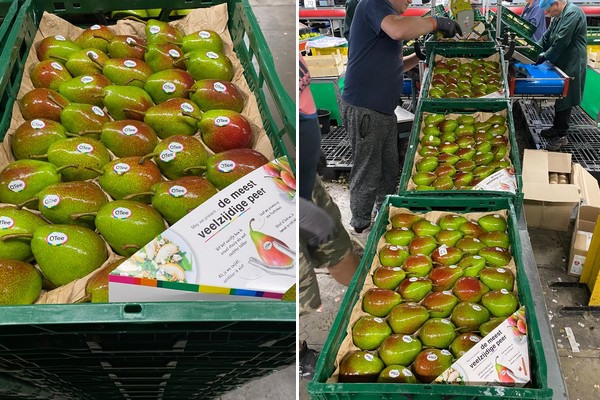 "We now also have a 25 per cent of pears that have fewer, or no red colouring," Kris continues. "By the way, these are also just class 1 pears we sell under the Celina brand. They aren't coloured red, but last year these also sold very well. We end up selling these pears more towards the end of the season. Last year, they were actually all sold within Europe, but countries like Vietnam, Malaysia and India are also interested in them. However, last year, prices in Europe were so high that we didn't need to take risks sending containers there. Whether more will go east this year remains to be seen. That depends on how prices are here in Europe."