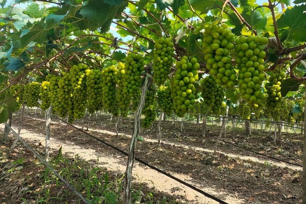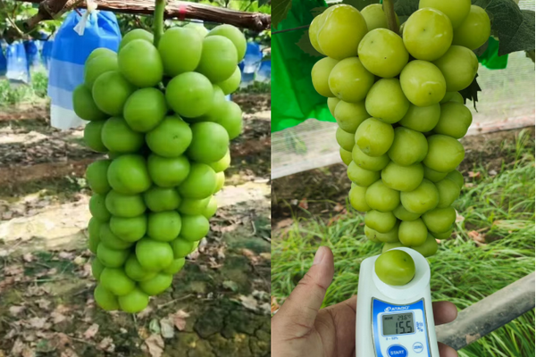 "Based on observations across different orchards, the grape growth looks promising, with ideal berry size, bunch shape, and Brix levels. The recent weather has been stable, and the market demands a Brix level of 16 or above. The current Brix is between 14-15, and it's expected to surpass 16 by harvest time."