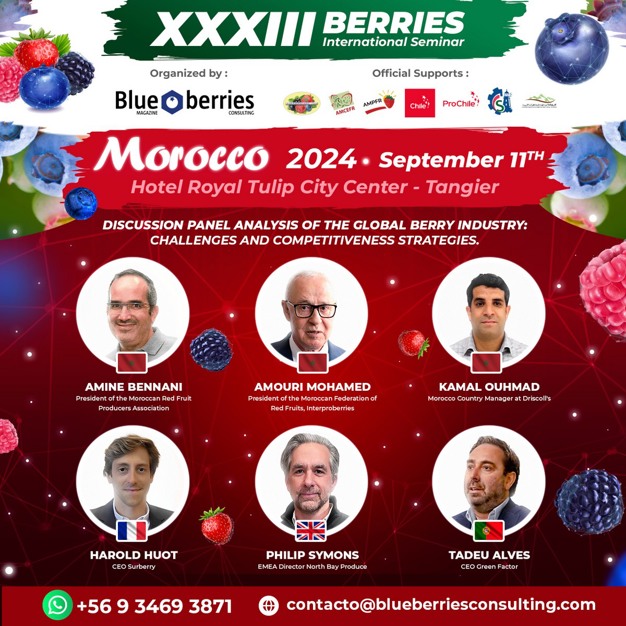 September is approaching and we can already talk about the program of the 33rd International Berries Seminar, to be held on September 11 at the Royal Tulip City Center Hotel in Tangier, which will bring together a large part of the global blueberry and berry industry.
