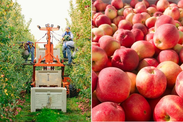 Stemilt Growers is harvesting and packing Rave, Gala (left) apple varieties, and getting started as well with SweeTango apples (right).