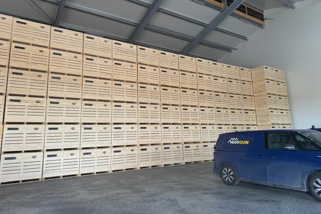 The cooling facility houses 2,300 Naus Agriboxes pine boxes. These are assembled on-site to reduce transportation costs and environmental impact. Naus Agriboxes focuses on good value for money and uses only wood from sustainably managed forests. The boxes' quality and durability are crucial, especially in dry storage conditions like at Polder Potato. The company is also experimenting with a wood treatment that extends the boxes' life without rotting the wood, vital for long-term agricultural product storage.