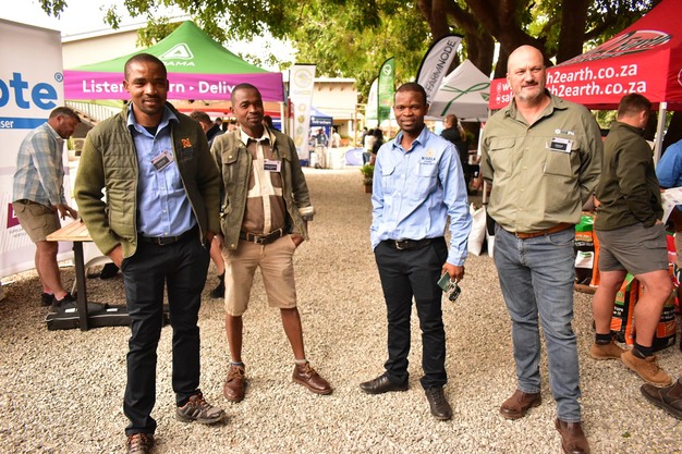 Dumisa Sikhondze from Nisela Farms in Eswatini, Zwelithini Dlamini from United Plantations in Eswatini, Innocent Zwane from Nisela Farms with Dr Johan van der Waals of RealIPM