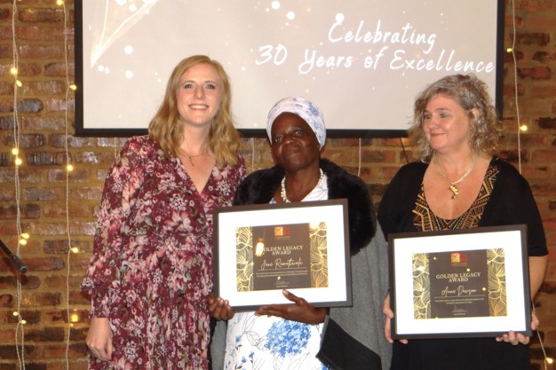 Suné Wiltshire, Du Roi Laboratory general manager, with Jane Ramothwala and Anne Davson, retired laboratory management receiving lifetime achievement awards (photo: Anne-Hélène Meyer)