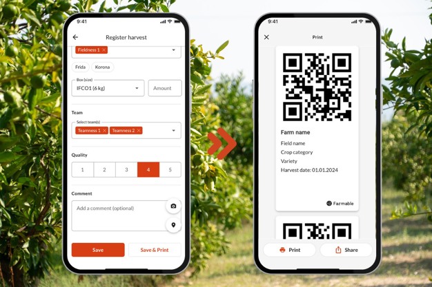 The Farmable App can be used to register harvested batches for your farm. Starting today, growers can immediately choose to print harvest labels for any existing harvest record. This can conveniently be done at the time when entering batch details, or go back to historical records and print labels when needed.
