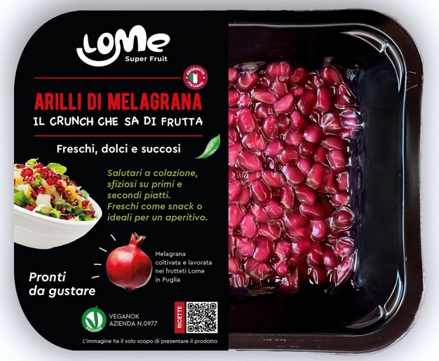 The agri-food company plans to position itself in this interesting market segment and make the most of the opportunity. "We are already ready with our Lome Super FruitĀ® pomegranate arils, the brand under which we also sell the fresh product and our 100% pure cold-pressed pomegranate juices. At Masseria Fruttirossi we can also guarantee buyers and consumers the origin and production chain of our ready-to-eat arils. We only pack arils from pomegranates grown on our 400 dedicated hectares, using agronomic methods that respect the environment, all of which are guaranteed by the numerous international quality certifications we have acquired, such as GlobalGAP, BRC, IFS, SMETA and Vegan OK."