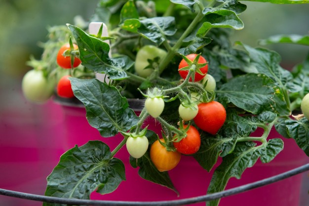 Plant with ripe space tomatoes. Photo: Stan Lim.