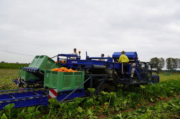 With the end of summer in sight, the switch to autumn produce is also slowly but surely taking place. Temperatures are not yet showing, but stone fruit and cherries are being traded in for leeks and cauliflower. And of course, pumpkin, which is currently being harvested in abundance on the growing farm of Jeroen De Ridder, who has adopted the nickname Jeroen Pompoen, which translated to Jeroen Pumpkin in Dutch. "We started a bit later than usual and the quality is variable. We see areas with very good pumpkins, but also a lot that we are not completely satisfied with," the grower from Sint-Gillis-Waas tells us.
