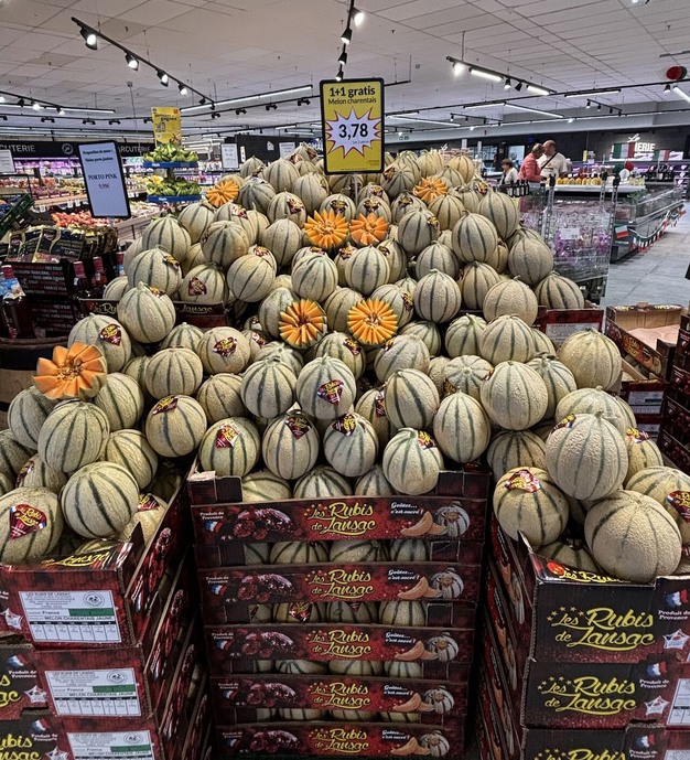 There are several reasons why melons were the star of the fruit and vegetable section from August 27th to September 1st. "Our supplier Jacques Remy brought superb French melons of high quality. It is very important for our customers to see that 1+1 free does not mean inferior quality. Additionally, in our store, promotional actions start on Tuesdays. Last week went well, with sunshine and the start of the new school year. There is nothing like seasonal fruit for a school snack. At this time of year, it is probably one of the last days melons can be enjoyed as a seasonal produce. Melons have been very good this year, both in terms of supply and taste. We had a great summer and the demand was high.