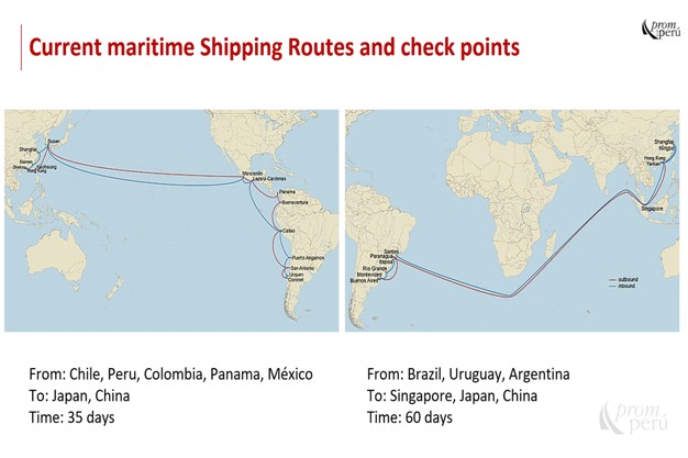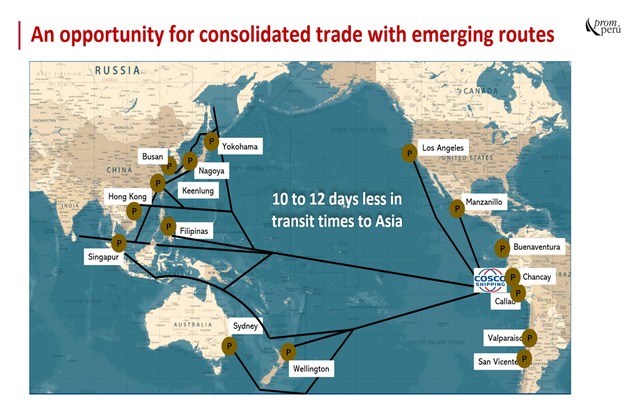The port of Chancay, due to open in November, will be the most modern in the Americas and will be 100% automated, allowing transport times to be shortened with direct shipments from Peru to China taking as little as 25 days. "At the moment, exports leaving Peru or the Pacific coast of South America bound to Shanghai take approximately 35 days to arrive. With this new port, those times will be reduced by 10 to 12 days," says Sakihama. For countries on the Atlantic coast, such as Brazil or Argentina, which currently need 60 days to reach Asia, the difference will be even greater, reducing shipping times by a full month.