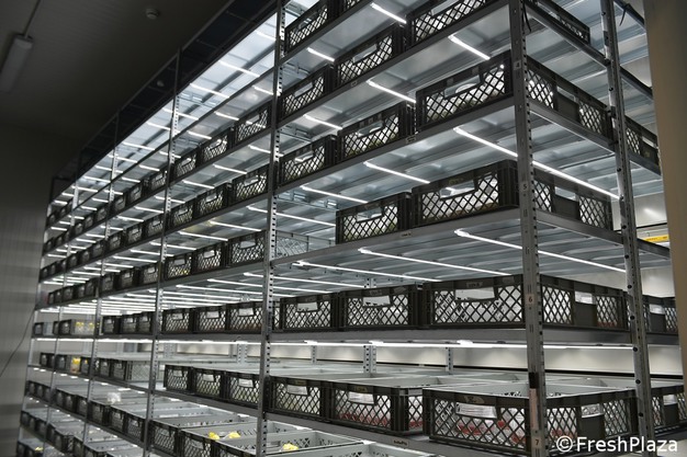 The most innovative element is undoubtedly the VitroLeaf Tower: it is an in vitro culture room, not accessible to personnel and totally robotized, that measures 8 metres high and 67 metres long and can hold up to 3.5 million plantlets. It features 22 shelves illuminated by LED lights to guarantee the development of plants, which follow a photoperiod of 16 hours of light and 8 hours of darkness, simulating the alternation of day and night. In addition to light, temperature, humidity and air flow are also monitored, and the environment is constantly controlled from the point of view of health and viruses.