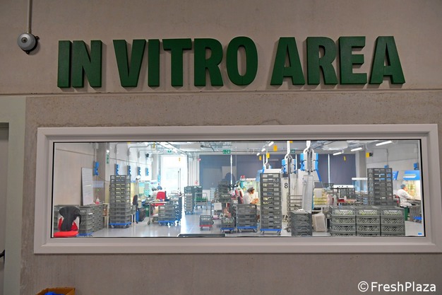 The goal is to reach 24 million plants produced in the next five years. The facility consists of an office area, a conference room, staff services, as well as production areas for preparing and growing the plants.