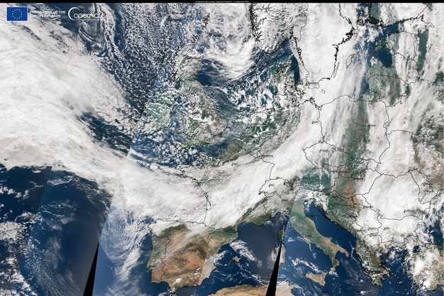 This Copernicus Sentinel-3 image, acquired on 11 September 2024, shows a cold front approaching the coasts of France, Belgium and the Netherlands on its way to make heavy landfall in Central Europe.