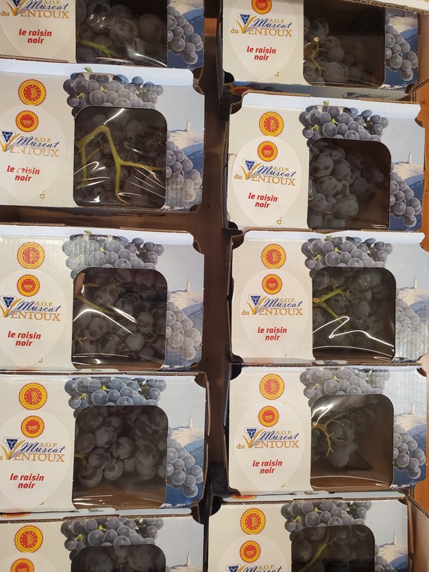 The new Muscat du Ventoux trays are made of cardboard with starch windows, available in three sizes: two 750g options and one 500g.