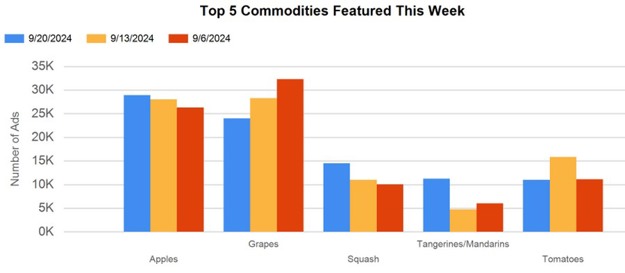 USDA has published the National Retail Report for advertised prices for specialty crops products at major retail supermarket outlets ending during the period of 14 September 2024 to 26 September 2024.