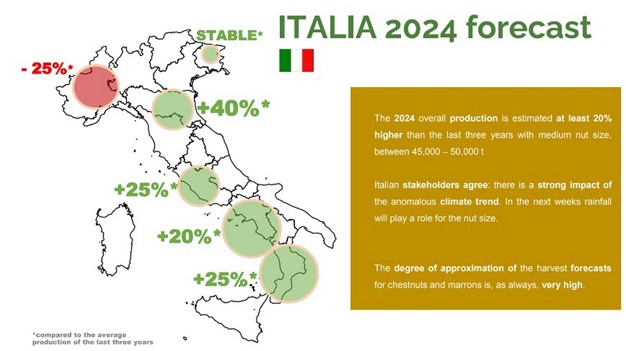 The 2024 production forecasts for Italy presented at Eurocastanea, prepared by technicians from the individual regions coordinated by UNITO