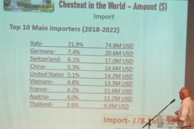 The depopulation of mountainous production basins in Europe has often forced new choices (intensive planting, introduction of Hy Chinese-Japanese cultivars) around which technical and economic considerations are being made. Italy is the leading producer country in Europe with around 50,000 tonnes, but it is also the leading exporter, generating revenues of around USD 60 million. At the same time, it is also the main importer with an estimated value of USD 75 million spent on produce from Turkey, Portugal, Spain, Greece, and Chile.