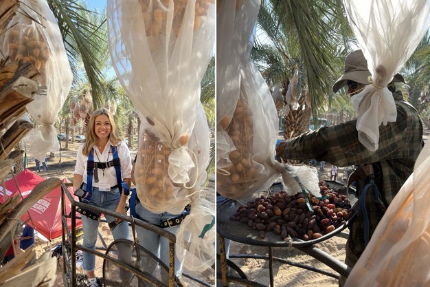Left: Shayna Telesmanic with BVDG. Left: a look at the hands-on nature of date harvesting.