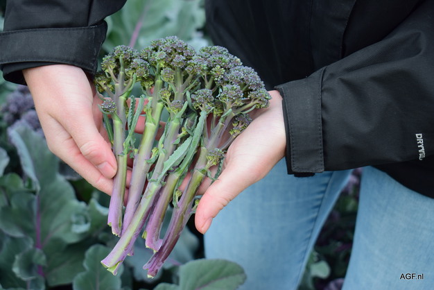 Linda Ruiter, Product Developer Benelux shows off purple sprouting broccoli