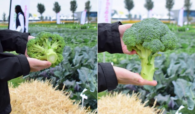 The first stop is at the broccoli section. Linda presents Leonidas, a broccoli variety with excellent external and internal qualities. "Leonidas has a beautiful dark green head, a high, rounded shape, and a dense stalk. When broccoli grows quickly, a hollow can sometimes form in the stalk, which happens during sudden warm and rapid growing conditions. Even if the head looks perfect, a hollow stalk is often a reason for retailers to reject a batch."