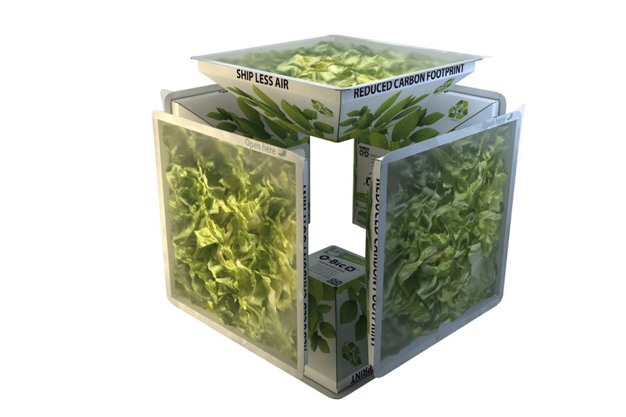 Q-Bic® is a new way of packaging individual units within consumer packaging, by putting 6 pyramid-shaped trays together into one cube with less than 10 percent air.