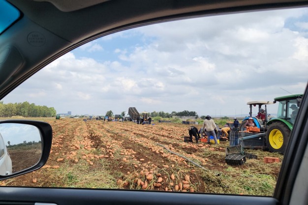 He says they have workers from Thailand as well as Bedouin people who help with the harvest of sweet potatoes. "This morning was the first time that we had rocket alarms in our fields here in central Israel. The Thai workers understand the war situation," explains David.