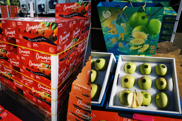 Left: Premium South African oranges; Right: Apples from Shandong, China.