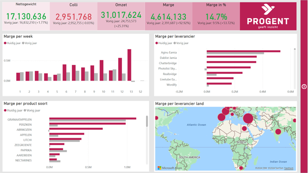 "Many AGF trading companies have a lot of data available, but hardly do anything with it," says William Verhoeven of Progent. "As a result, they often rely on gut feeling in their business dealings and only find out at the end of the year or month whether they've made a profit. In our view, you should know what you've gained or lost on the same day. That's why we provide them with dashboards that offer tools to manage their business, allowing them to make decisions based on facts."