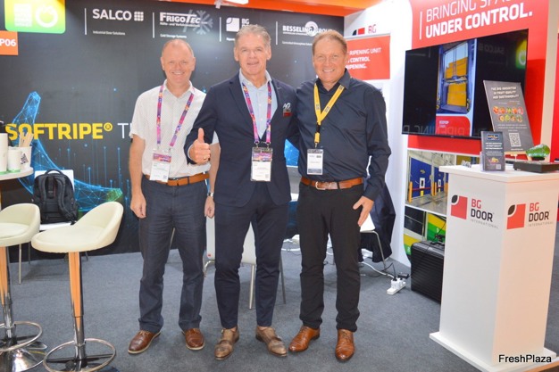 Frigotec Managing Director Roland Wirth (right) with colleagues from BG Door International at this year's Asia Fruit Logistica. In Madrid, the Softripe trade fair team is now also available in English and Spanish.