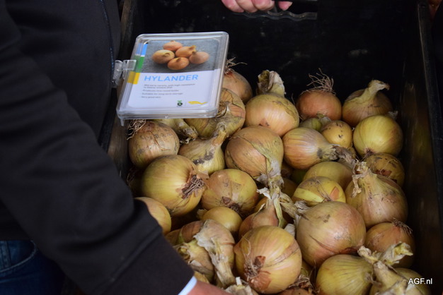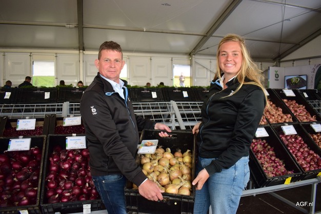 Onion specialists Joost Litjens and Hanna Bruinsma show the popular variety Hylander.