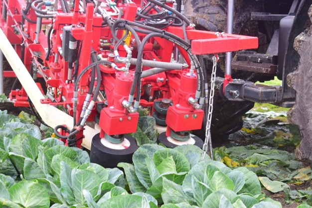 Cabbages are lifted by root from the ground by two torpedoes at the front. The coal is then carefully and smoothly transported, utilizing rolls with mousse, to the knife and cut off at the same height. Transport is gentle and smooth with the help of lateral non-slip belts that do not harm the cabbage.