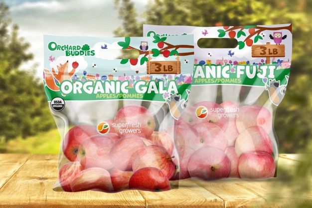 At this year's IFPA Global Produce & Floral Show, Superfresh Growers will unveil more than just a new booth design. It is excited to launch a new brand with variety-specific packaging, complete with a cast of fun animal friends living in an apple orchard. These pouch bags are made from 100 percent LDPE, making them recyclable at store drop-off locations and anywhere that accepts film recycling.