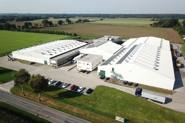 Aerial view of the modern location in the Oldenburger Münsterland. One third of the entire operation (on the left in the picture) was converted to organic production in 2022.