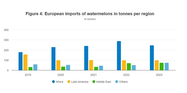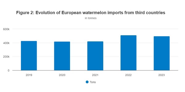 In 2023, the European market imported 50% of its additional volumes of watermelons from Africa, 20% from Latin America and 15% from the Middle East.