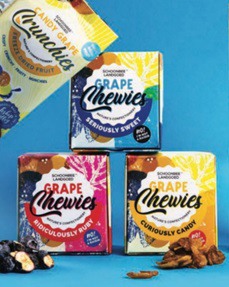 Right: The Grape Chewies range are made by dehydrating Sable Seedless®, Crimson and Cotton Candy™