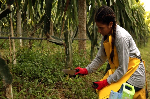 "Organic pitaya is grown under a regenerative agriculture system that aims to revitalize the soil and promote biodiversity. Our soil is alive," says Johanna, explaining how the weeds that cover the farm's soil help prevent erosion and keep the soil's microbiome healthy. "Also, we use living legume poles instead of concrete structures. This not only reduces the environmental impact, but also contributes to the natural fixation of nitrogen in the soil, thereby boosting the sustainability of the ecosystem."