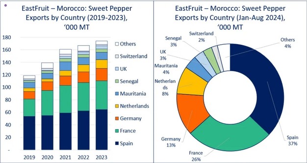 This volume represents a 20% increase compared to the same period last year, positioning Morocco well to set a new export record if the current growth rates continue. Notably, monthly export figures for Moroccan bell peppers this year have, with few exceptions, significantly surpassed those of previous years.