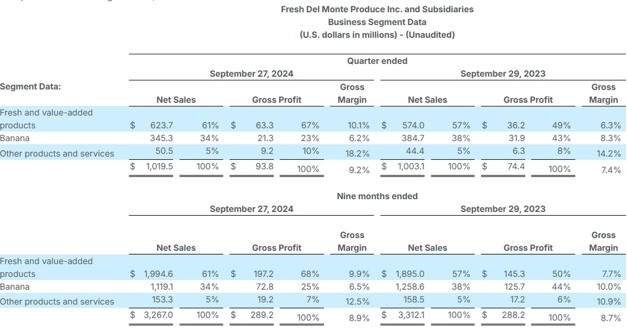Fresh Del Monte Produce today reported financial results for the third quarter ended September 27, 2024.