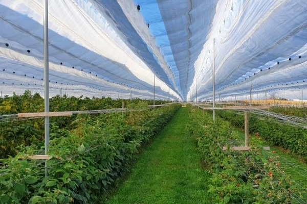 Covering raspberries in southern Germany with the 'Parallel Offset' system
