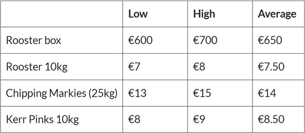 In the U.K. for crisping varieties, overall clearance is put at north of 80%. In terms of markets, most movement is currently contract but buyers for some of the main multiples have been looking for blocks of best-quality free buy. Across Europe, export markets are reported to be quieter than they were last month, although there is good demand in France for Spanish potatoes and reports of light movement to Eastern Europe.