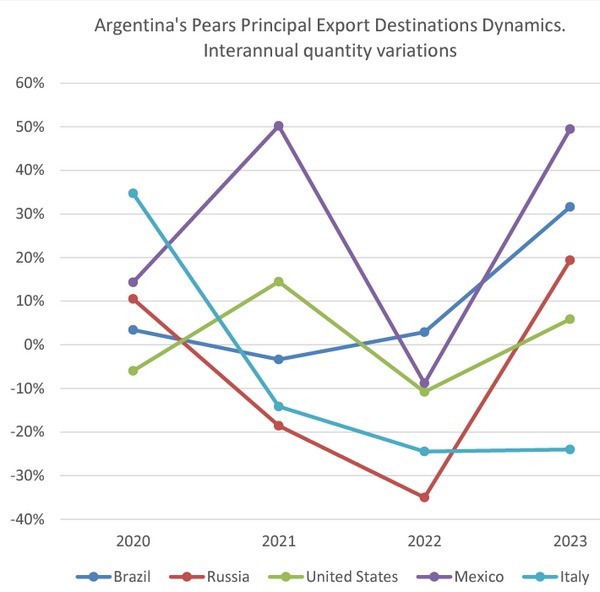 The number of apple and pear producers in Argentina has significantly declined in recent years. According to the National Food Safety and Quality Service (SENASA), there were about 9,000 producers in 2005, but by 2023, that number had dropped to just 1,605 producers. This sharp reduction can be attributed to multiple factors, including rising production costs, urbanization of agricultural areas, and an aging workforce. However, the remaining producers in the industry tend to be more financially secure and stable.