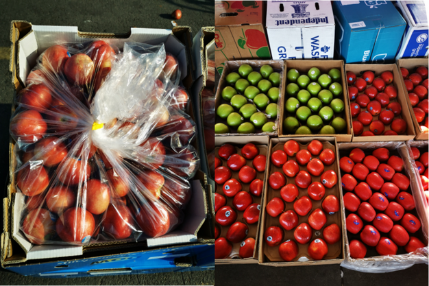 Left: Australian nectarines; Right: U.S. and French imported apples