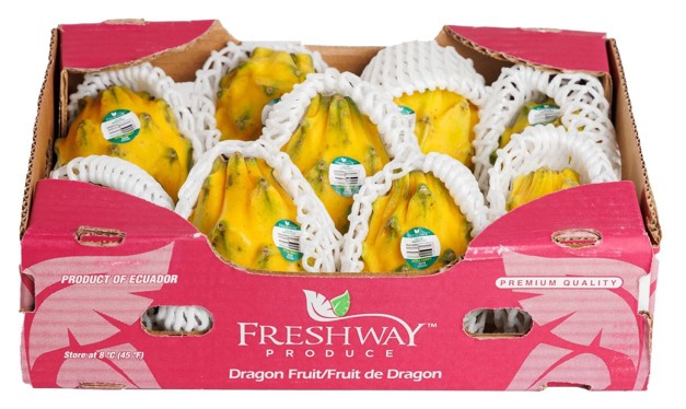 Currently, yellow dragon fruit supply from Ecuador is short as the country's main production region, Palora, is off-season. "We are bringing in small quantities from another region in the Andes mountains, but supply from there is not plentiful," says Jose Roggiero with Freshway Produce. However, harvest in the Palora region will commence in the next few weeks with the Palora variety, which is exclusive to Ecuador and considered the sweetest dragon fruit variety available. "Production will start with lower volumes and is projected to reach higher levels by mid-December." The main season is expected to last until March or longer, depending on availability.