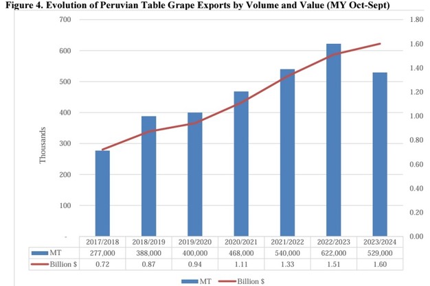 Peruvian grape producers have adapted to changing weather conditions while ensuring the efficient use of water on their farms. Additionally, licensed grape varieties have increased productivity and increased competitiveness compared to common grape varieties.