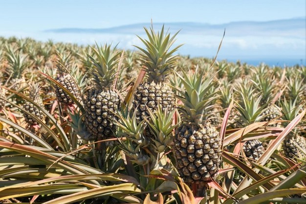 In Hawaii, the Maui Gold pineapple–a variety known for its high level of sweetness and lower acidity compared to other pineapples–is only grown on the slopes of Haleakala just below Makawao town. "This location combines fertile soil, warm sunny days, cool nights, and consistent afternoon rains," says Strand, adding that while there may be some seasonal temperature and day-length variations, the growers coordinate planting and harvesting to ensure an even harvest volume weekly.