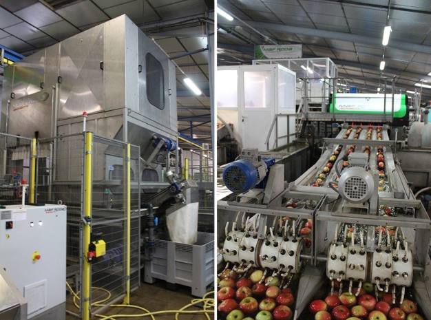 "This pre-calibration system is designed to work with 120 x 120 paloxes, and offers a capacity of 33 to 38 paloxes per hour, depending on the apple variety. All the equipment is operational and ready to be integrated into your fruit station, in order to improve your productivity."